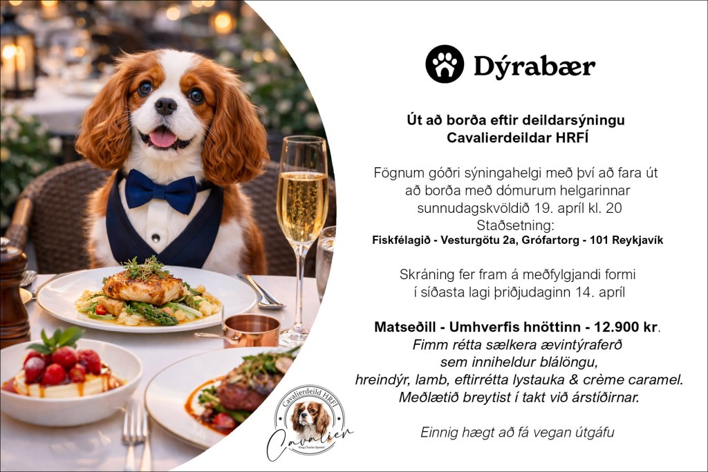 Ársfundur Cavalierdeildar HRFÍ haldinn 12. mars 2026 í húsnæði Hundaræktarfélags Íslands að Melabraut 17 í Hafnarfirði.
