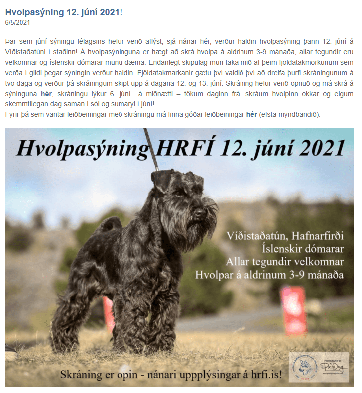 Svo er HRFÍ er með góðar leiðbeiningar (efsta myndbandið) um hvernig á að skrá hund á sýningu (smellið hér)