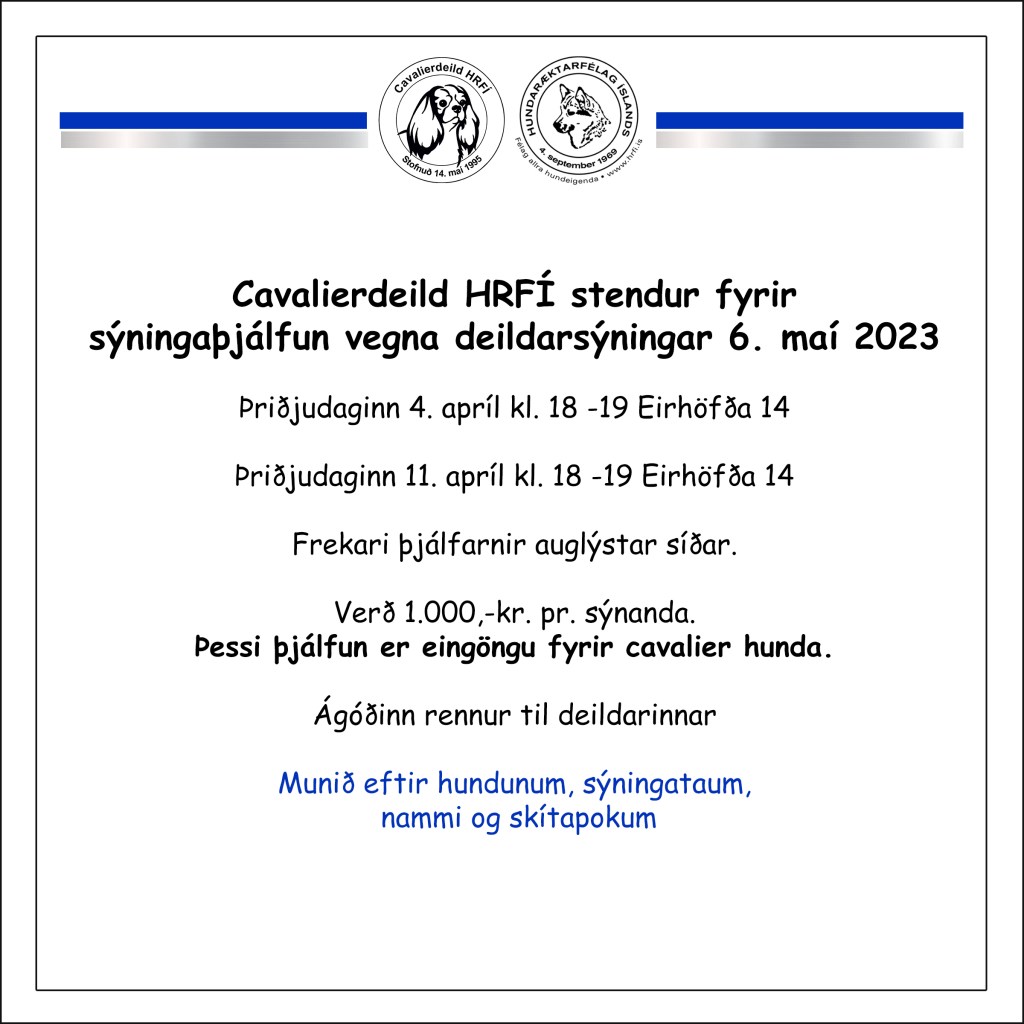 Sýningaþjálfun 01/04/2023Fréttir, ViðburðirCavalier HRFI BH hönnun Deila: Click to share on Facebook(Opnast í nýjum glugga) Facebook Líka við Hleð... Related