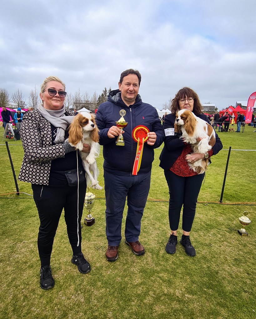 Um helgina var tvöföld sýning HRFÍ haldin á Víðistaðatúni í Hafnarfirði. Á sunnudaginn var alþjóðleg sýning með samtals 1030 skráðum hundum, þar af 60 cavalier en 8 mættu ekki. Einnig voru sýndir 3 ræktunarhópar. Dómari var Dimitrios Antonopoulos frá Svíþjóð.