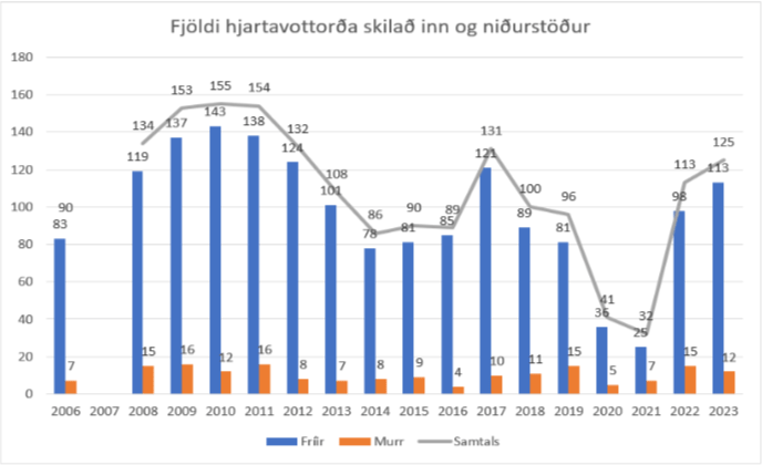Á árinu voru 107 hundar skoðaðir en 17 voru skoðaðir tvisvar og einn þrisvar. Voru því gefin út 125 vottorð árið 2023.
