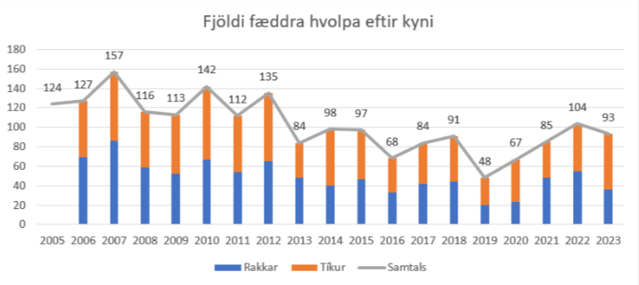 Á árinu fæddust 36 rakkar og 57 tíkur.