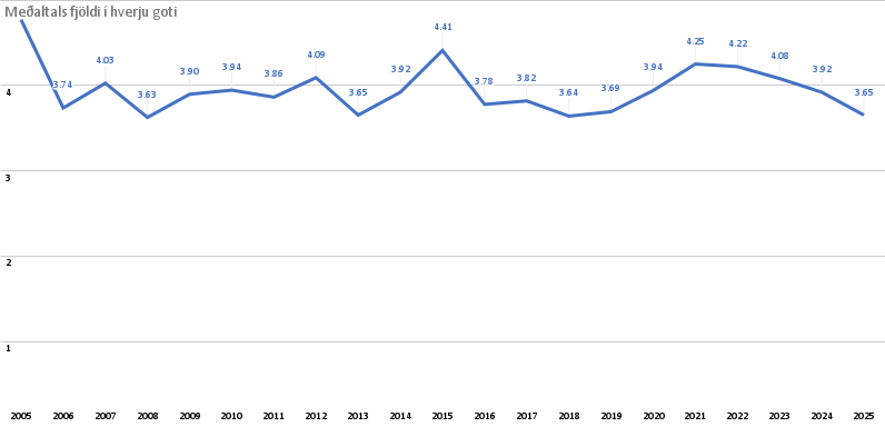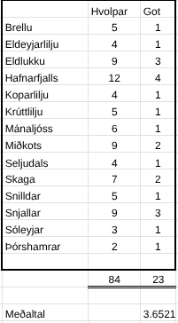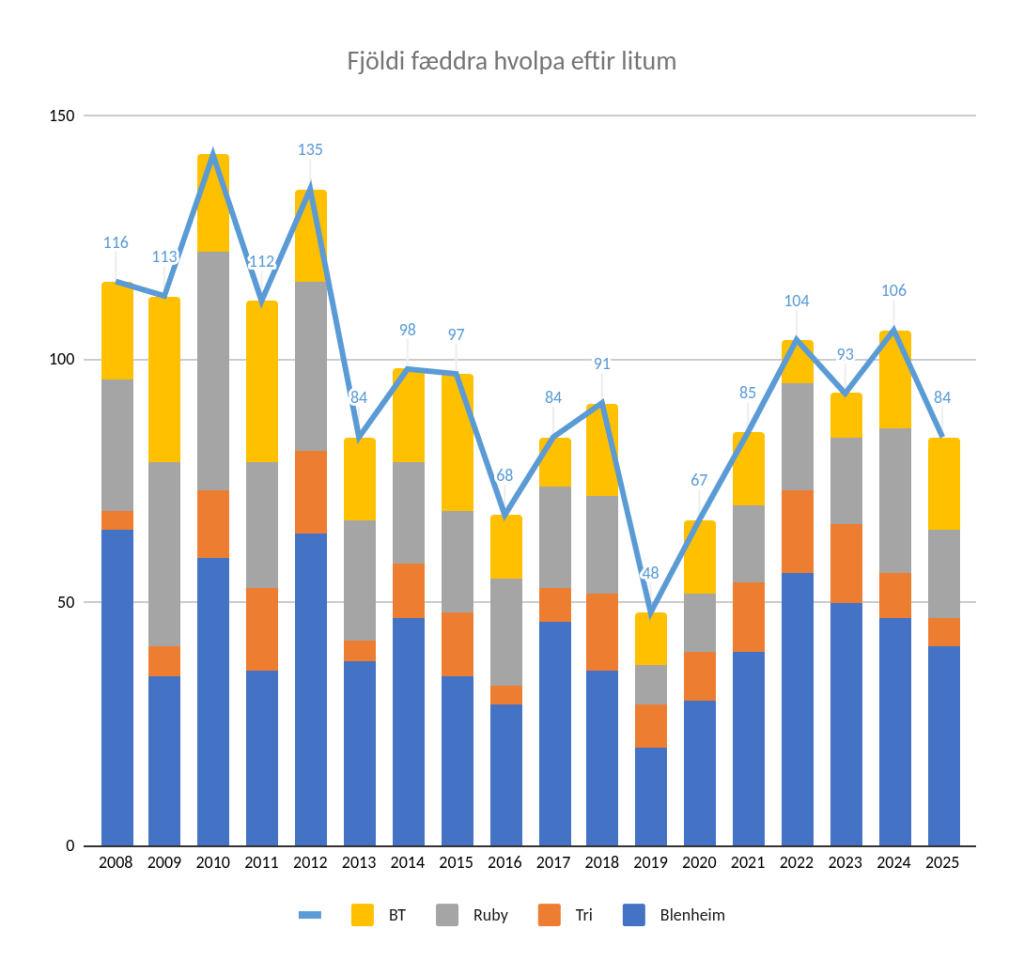Fjöldi gota sem skráð voru á árinu hjá HRFÍ var 23 hjá 14 ræktendum. Meðalfjöldi hvolpa í goti var 3,65.