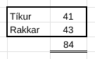 - 11.-13. Sóldísar Amý Mandla – 1 stig