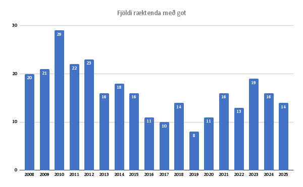 14 ræktendur voru með got skráð á árinu.