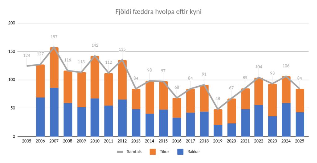 Á árinu voru skráðir 43 rakkar og 41 tík