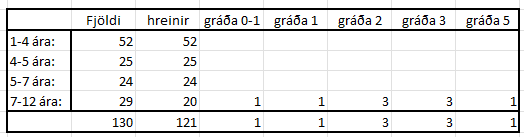 Skiptingin á DNA niðurstöðum eru: