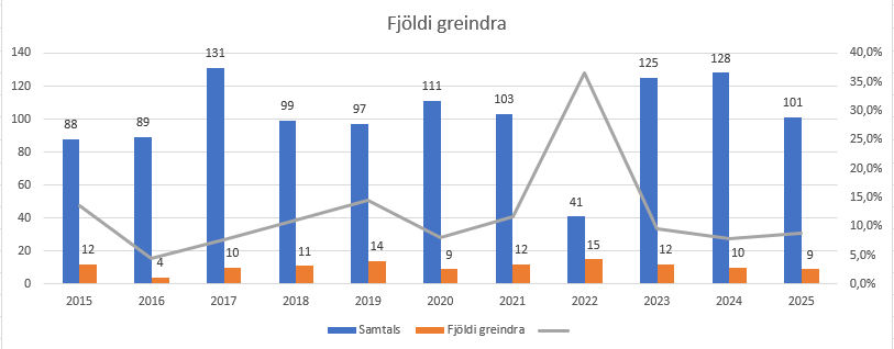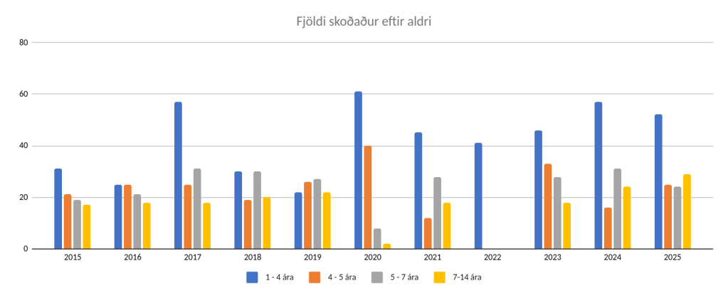 Á árinu voru 130 hundar skoðaðir en 82 hundar með eitt vottorð, 21 voru skoðaðir tvisvar og tveir skoðaðir þrisvar. Voru því gefin út 128 vottorð árið 2025. 9 voru með greiningu og voru þeir allir yfir 7 ára.