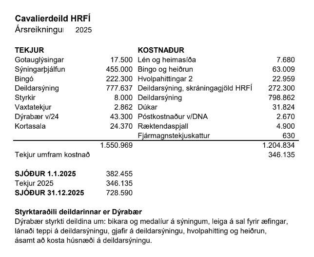 Ársfundur Cavalierdeildar HRFÍ haldinn 12. mars 2026 í húsnæði Hundaræktarfélags Íslands að Melabraut 17 í Hafnarfirði.