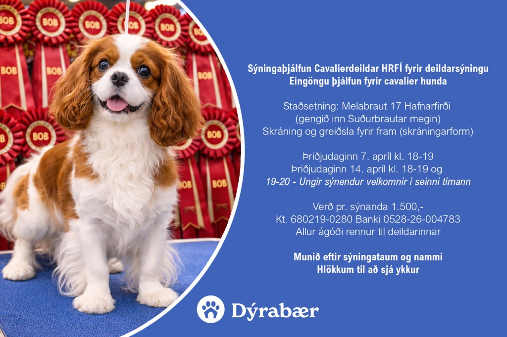 Ársfundur Cavalierdeildar HRFÍ haldinn 12. mars 2026 í húsnæði Hundaræktarfélags Íslands að Melabraut 17 í Hafnarfirði.